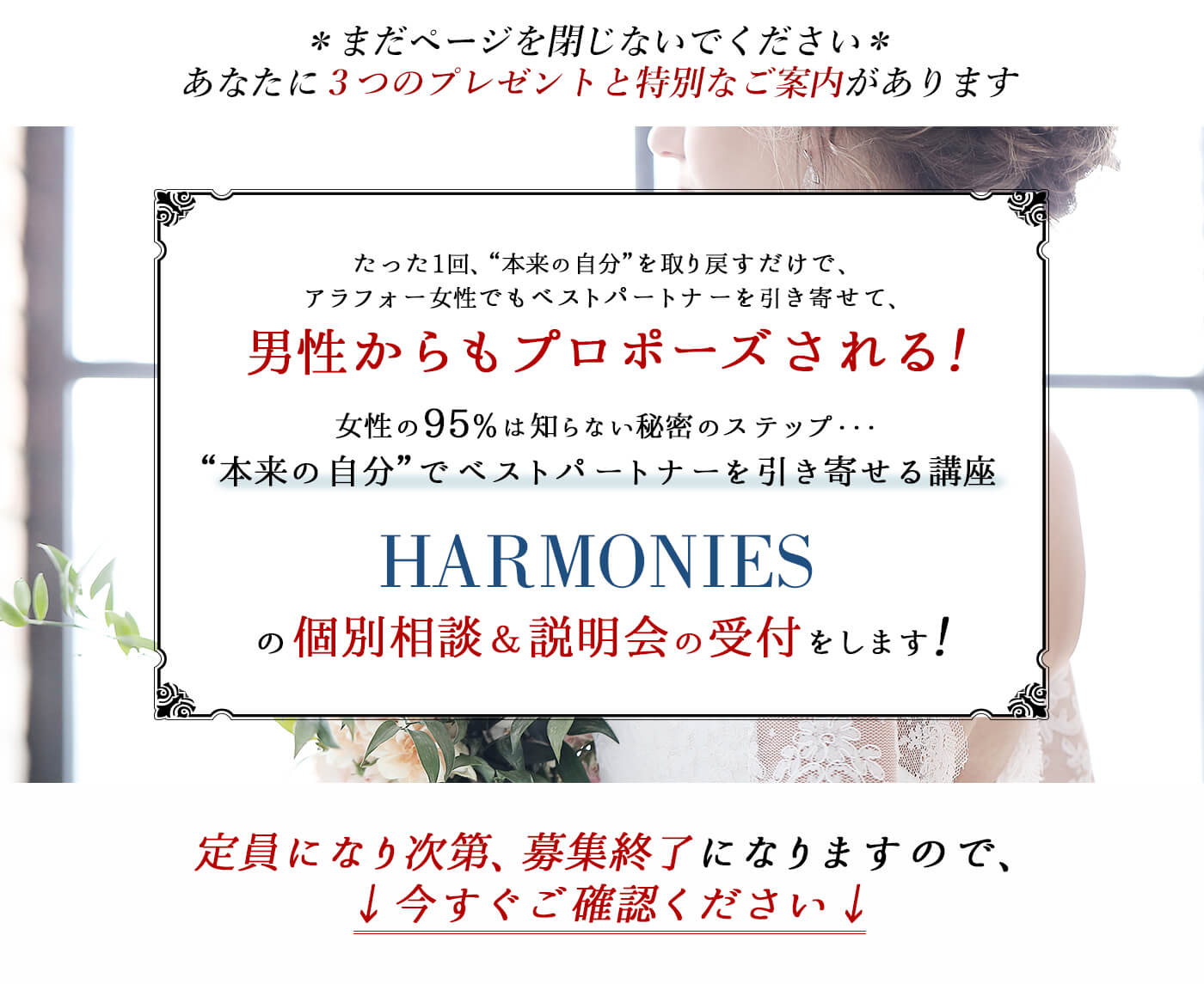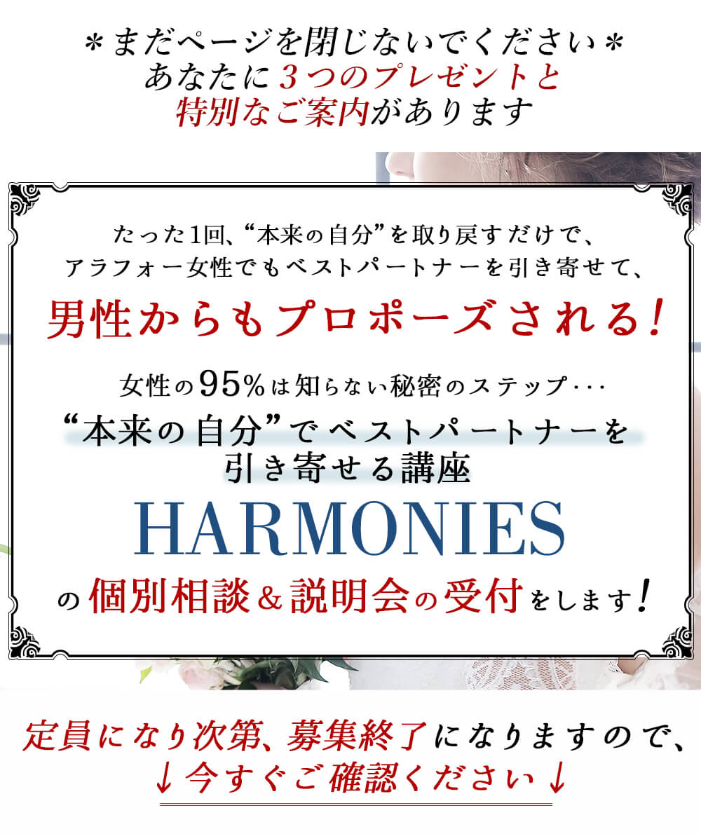 "「あの時にHARMONIES で学んだから、今の彼氏さんと結婚が決まりました。本当に感謝しています。